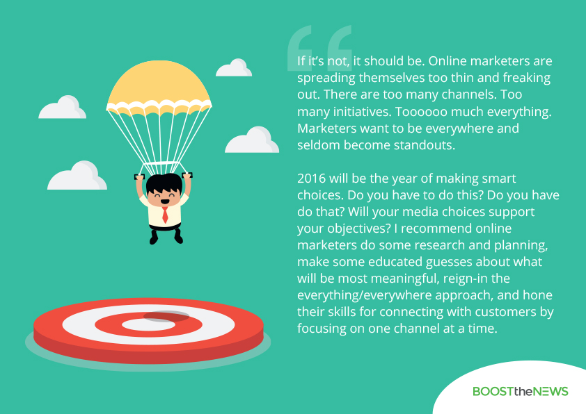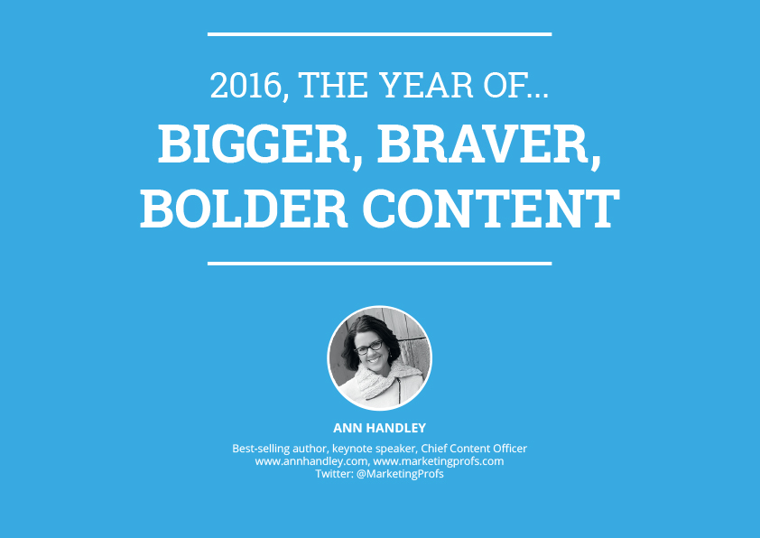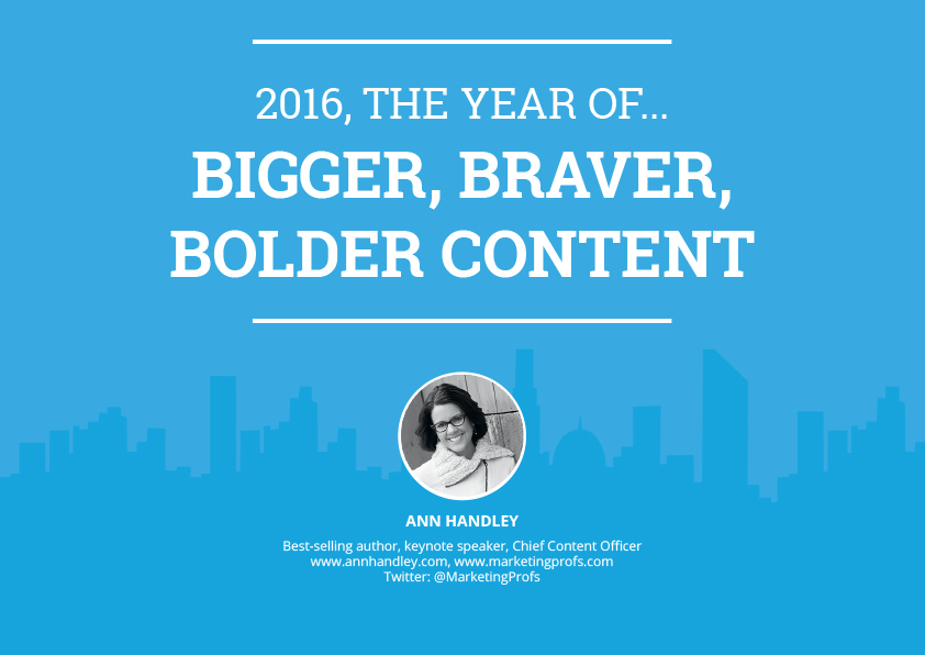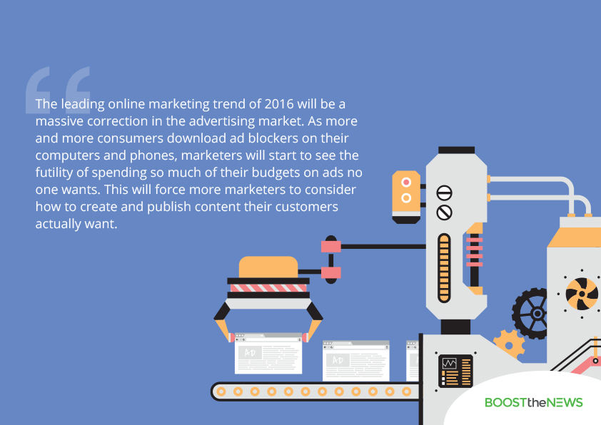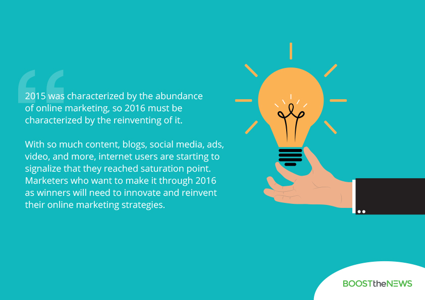 Trendy zawarte w ebooku zostały wytypowane przez 16 ekspertów z branży online marketingu. Wypowiedź każdego z ekspertów zaczyna się od zdania „2016, the year of…”, a następnie pojawia się główne hasło. Oprócz wypowiedzi ekspertów, w publikacji pojawiają się także ich zdjęcia, zawody i stanowiska oraz linki do miejsc w sieci, gdzie możemy zapoznać się z ich działalnością. Każdy trend to osoby kolor, dzięki czemu publikacja jest bardzo żywa i kolorowa.
